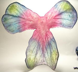 | 月光蝶 作成 1,原型を模型用の粘土 Mrクレイで製作 2,ほいく粘土、シリコーンゴム、型枠用の アルミ板で原型より両面型を作る。 3,型にホビーキャスト透明を流し込み 透明な複製品の出来上がり 4,ペーパーがけ、エアブラシで塗装 5,ジョイントの取り付け ジョイント部分は穴をあけキット付属の ジョイントをさしこみ接着剤で固定。 キット自体可動部分がポリキャップ ではなくABS樹脂なので ポーズが決まります。。 |